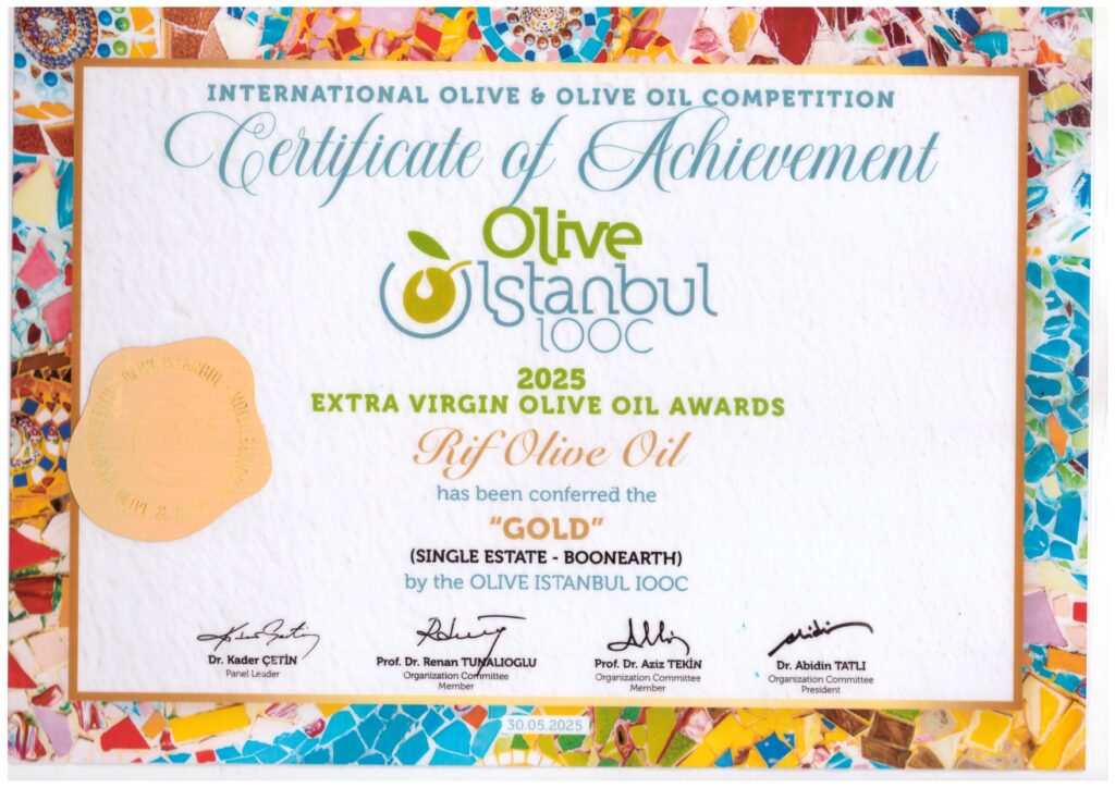 مسابقة إسطنبول الدولية لزيت الزيتون” (IOOC Istanbul). تُنظم المسابقة من قبل أكاديمية زيت الزيتون وتهدف إلى تطوير صناعة الزيتون وزيت الزيتون —- زيت زيتون ريف حاصل علي الميدالية الذهبية