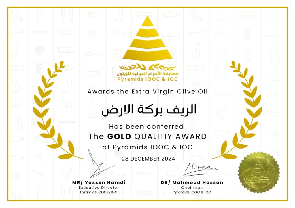 مسابقة الأهرام الدولية لزيت الزيتون هي مسابقة عالمية تقام في مصر وتستقطب الشركات والمزارعين من مختلف أنحاء العالم للتنافس على جوائز زيت الزيتون. — زيت زيتون ريف حاصل علي الميدالية الذهبية